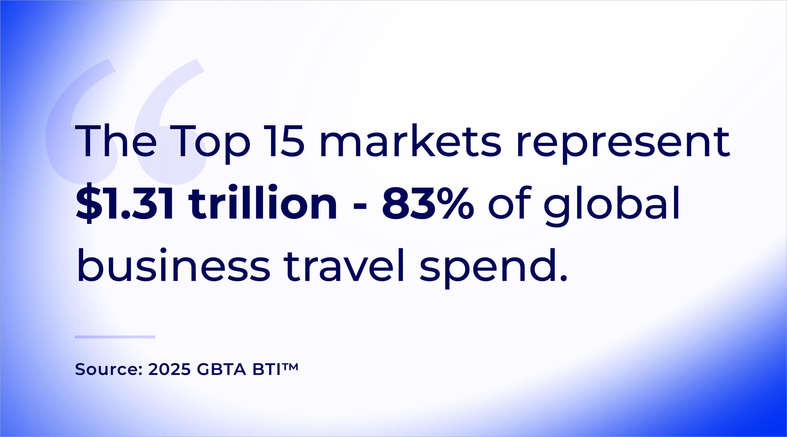 India leads the pack at +15.5%, reflecting its expanding tech sector, manufacturing growth, and increasing integration into global supply chains. With $43 billion in business travel spend, India represents both enormous current value and even greater future potential.